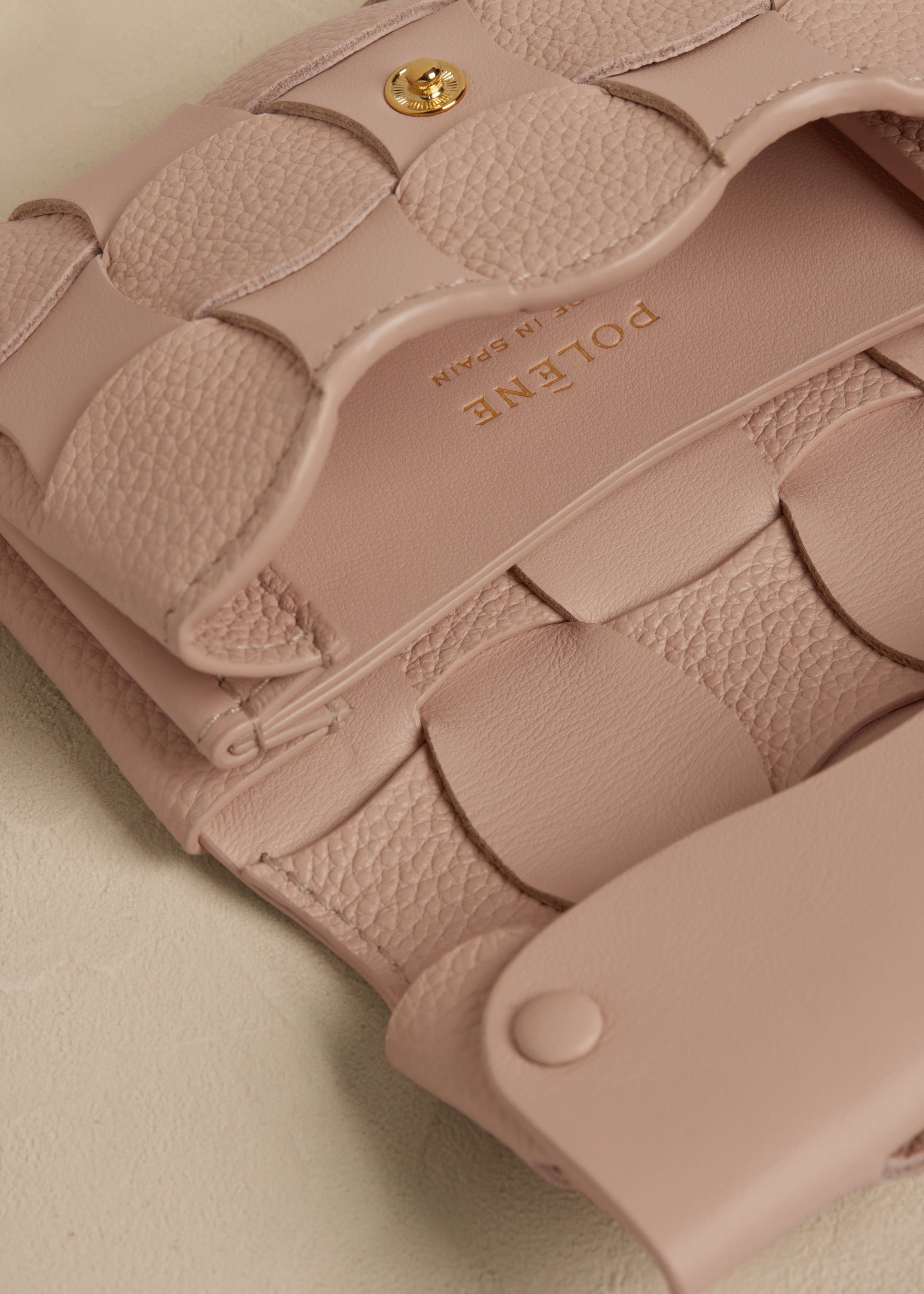 The “Neiti” card holder is a reinterpretation of an iconic leather-working technique, braiding, made softer through wave-like lines. Innovative folds made from smooth and textured tone-on-tone leather give this piece its shape and volume.
